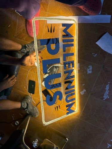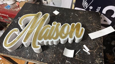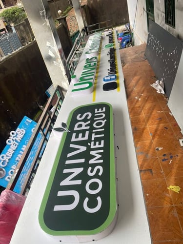 Refonte de la facade principale du magasin avec l'alucobond ainsi que la pose des écritures lumineuses 3D
